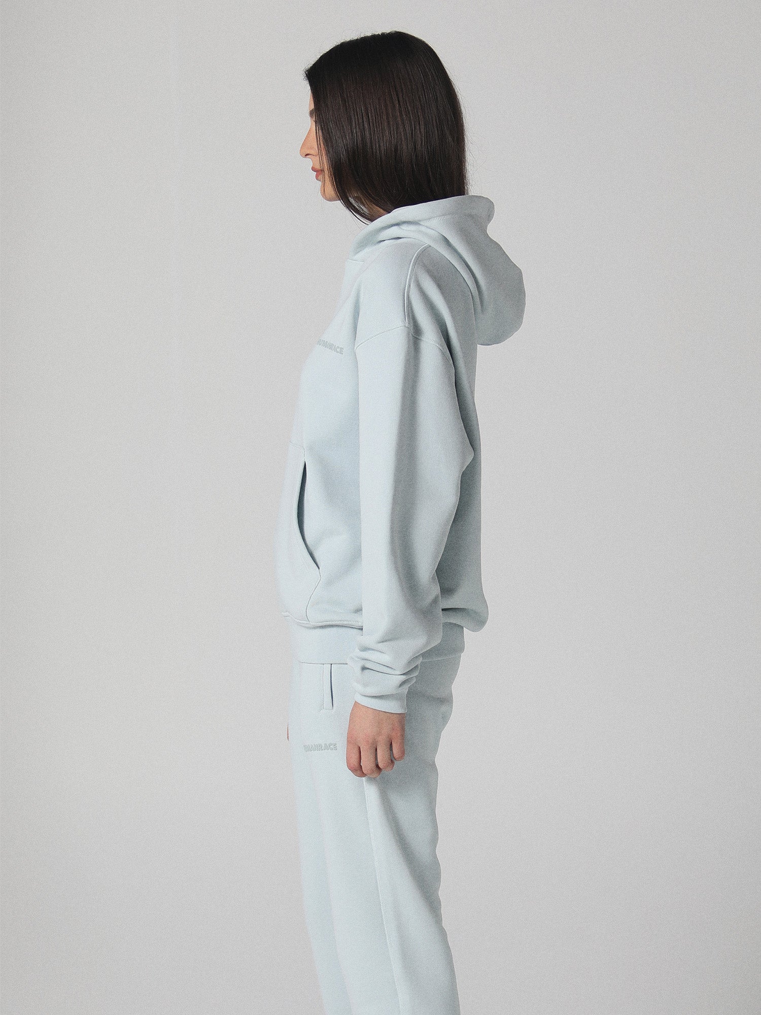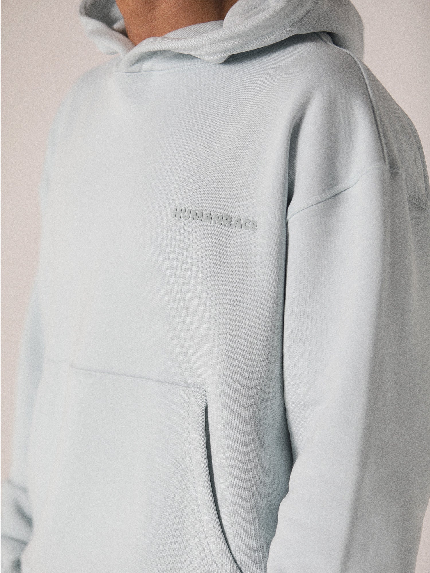 Expertly crafted for comfort and sustainability, the Erisi Hoodie in Soft Blue is made from 100% organic cotton with a heavy-weight 550 GSM loopback fabric. The signature 'HUMANRACE' logo is elevated with premium raised puff print on the chest. Featuring an appliqué woven label and overlock stitching for added detail, this hoodie boasts a relaxed unisex fit for versatile wear.
