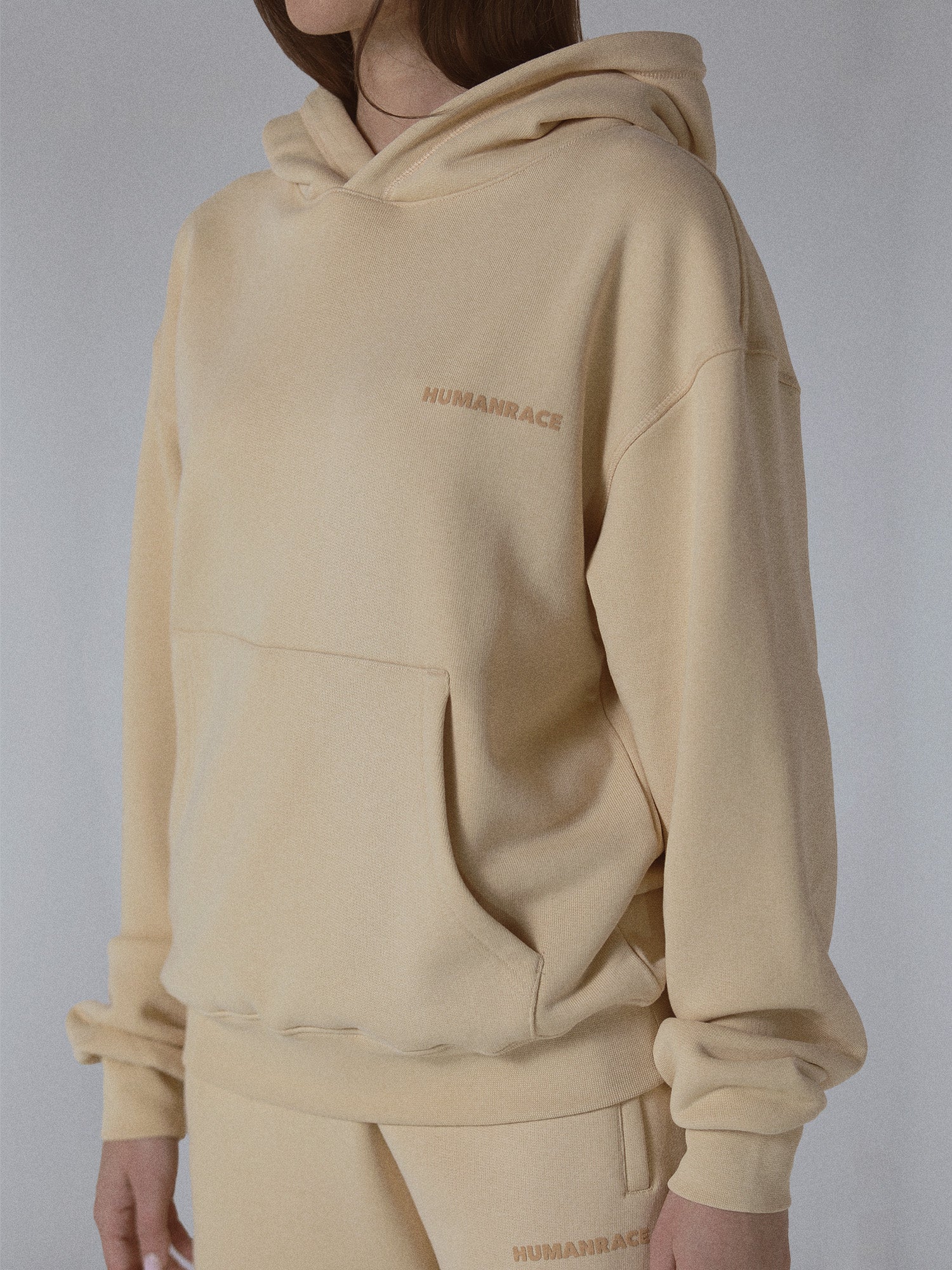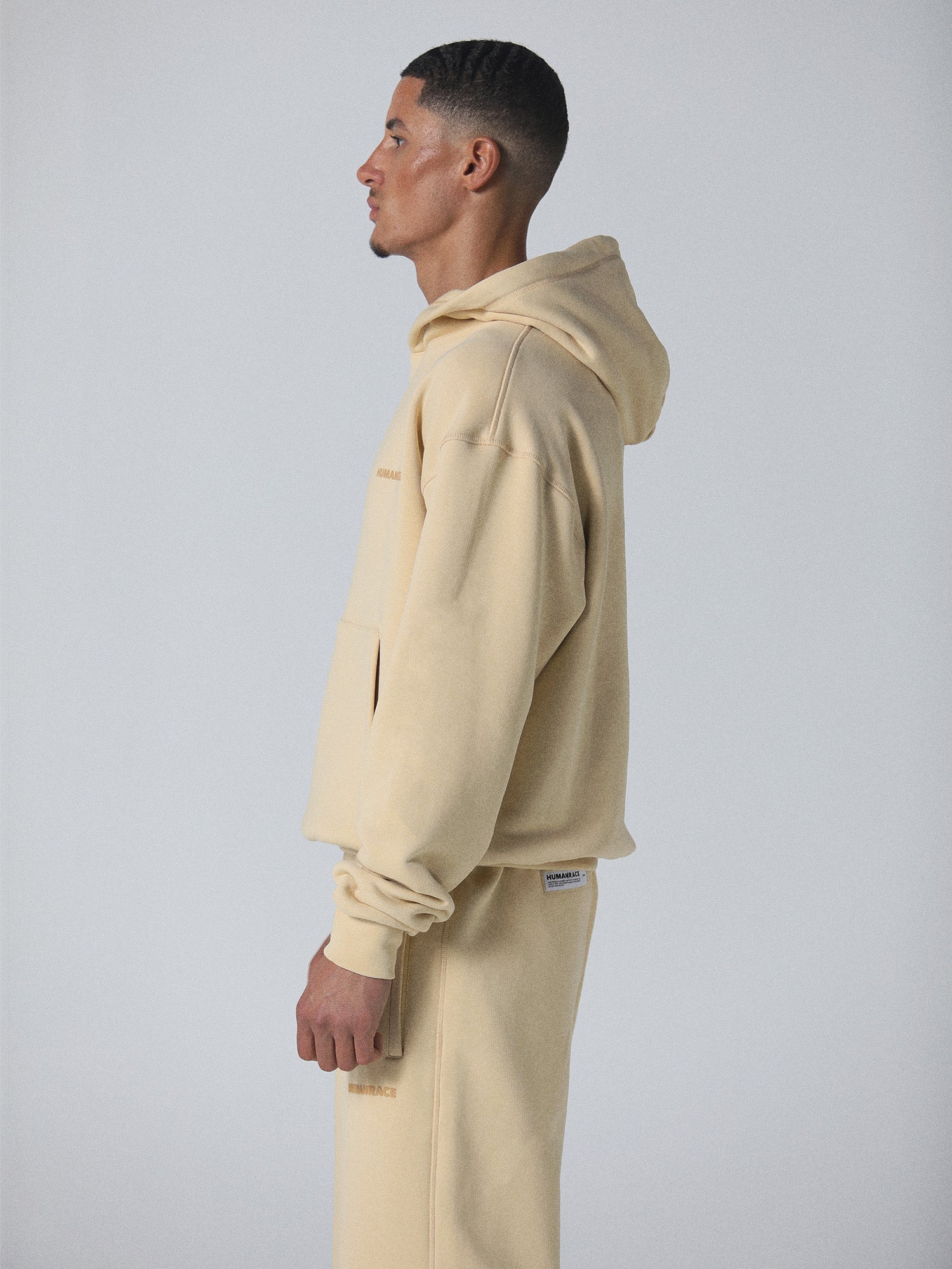 Expertly crafted for comfort and sustainability, the Erisi Hoodie in Vintage Yellow is made from 100% organic cotton with a heavy-weight 550 GSM loopback fabric. The signature 'HUMANRACE' logo is elevated with premium raised puff print on the chest. Featuring an appliqué woven label and overlock stitching for added detail, this hoodie boasts a relaxed unisex fit for versatile wear.