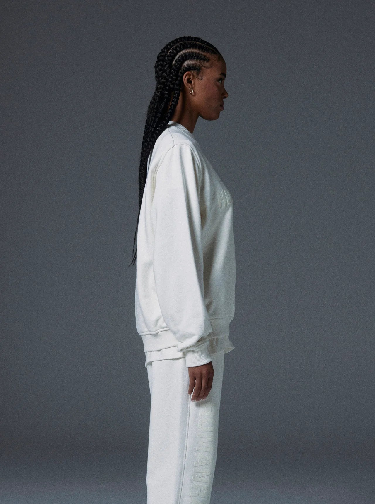 Introducing the HUMANRACE crewneck, constructed using 510 GSM heavy-weight organic cotton. This ultra-comfortable hoodie is designed with an oversized and relaxed fit for a laid-back yet stylish look. It features overlock stitching details, which provide enhanced durability and longevity to the garment. Featuring a premium raised puff print of the 'HUMANRACE' logo on the chest.