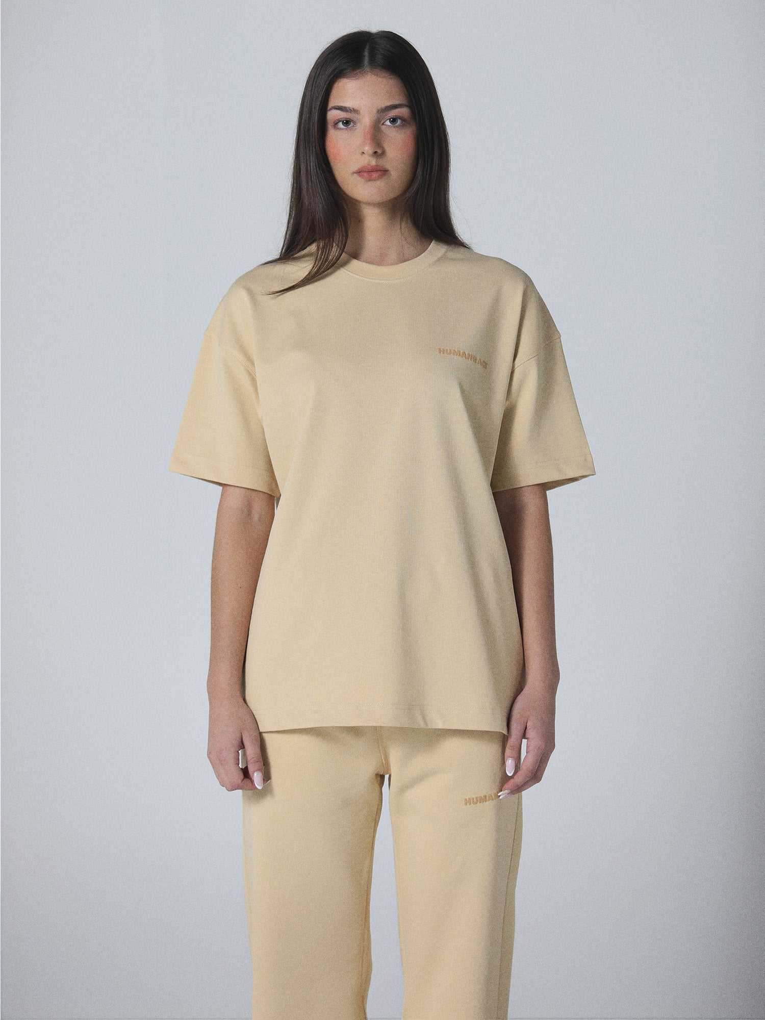 Introducing the new collection Space T-Shirt in Vintage Yellow, meticulously crafted from 340 GSM heavy-weight organic cotton. This tee exudes unmatched comfort, boasting an oversized, relaxed silhouette. Noteworthy details include overlock stitching for reinforced durability, ensuring lasting wear. Adorned with a premium raised puff print of the 'HUMANRACE' logo on the chest and an appliquéd woven label with tonal stitching at the back, this piece epitomizes both style and substance.