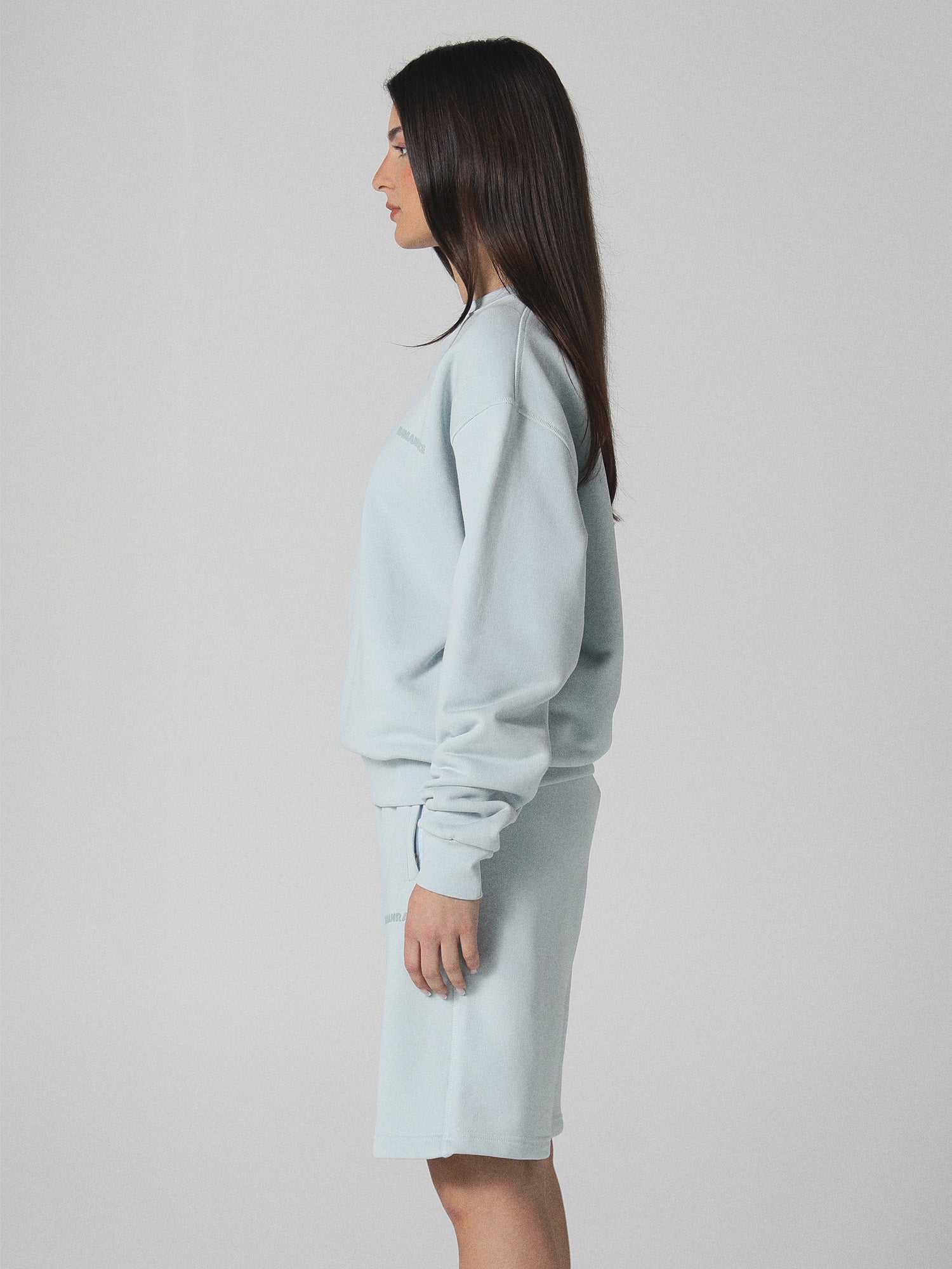 Introducing the HUMANRACE World Crewneck in Soft Blue, a standout piece from our latest collection, meticulously crafted from 550 GSM heavy-weight loopback organic cotton. This sweatshirt boasts unparalleled comfort, designed with a relaxed silhouette for an oversized look. Notable for its overlock stitching details, ensuring reinforced durability and longevity. Adorned with a premium raised puff print of the 'HUMANRACE' logo on the chest and featuring an appliqued woven label with tonal stitching on the back, this garment merges style with substance seamlessly.